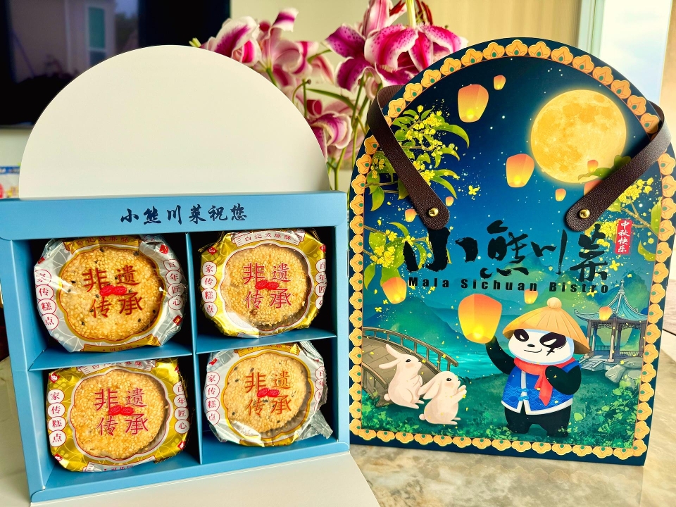 6 pcs. A classic Sichuan street sweet, sticky rice cake dressed with bread crumbs, fried and dipped in brown sugar and soybean powder